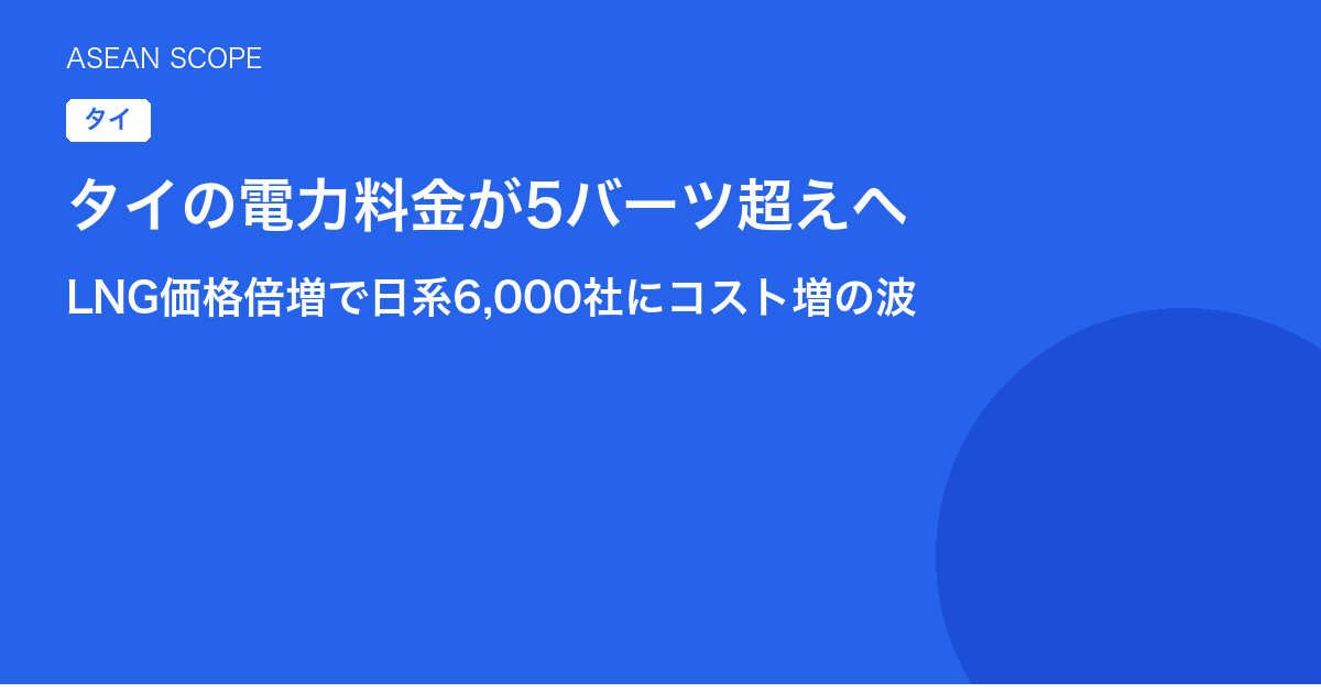 1. 5〜8月期の電力料金改定を前提としたコスト計画を立てる。3.88バーツ→5バーツ超への上昇(約30%増)を織り込んだ予算修正が必要だ。特に電力消費の大きい製造ラインを持つ企業は、省エネ投資のROIが大幅に改善するタイミングでもある。
